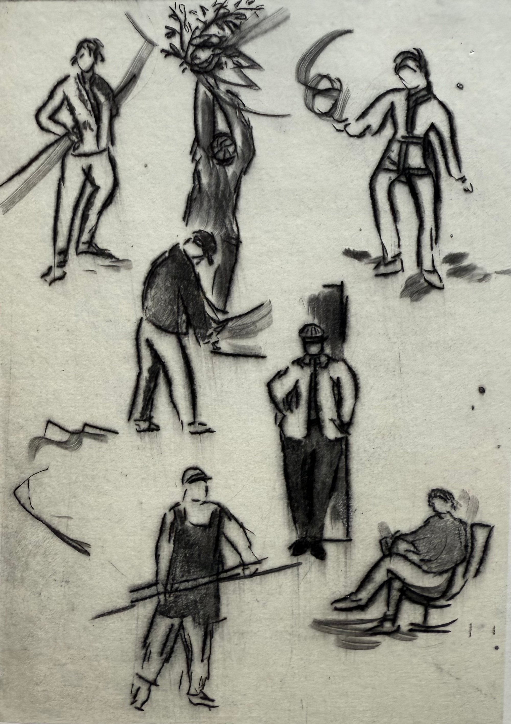 Gravure sur plexiglas imprimée sur papier vélin avec chine crème appliqué