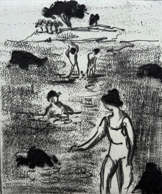 Gravure sur plexiglas imprimée sur papier vélin avec chine crème appliqué